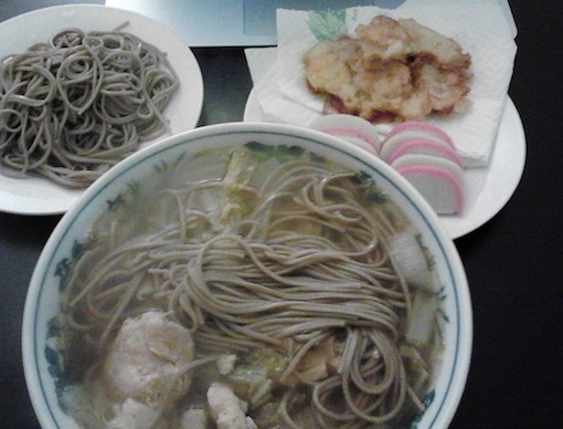 大晦日の晩は、日系スーパーで仕入れた蕎麦や紅白かまぼこ、海老の天ぷら(海老:衣=3:7)を食す。ねぎを乗せる予定だったが、ひどい雪だったので、スーパーに行くのを諦めた。その代わり(!?)に調子に乗って 蕎麦を2束 茹でたら、多すぎて 年明け蕎麦 も食べる羽目に。。。