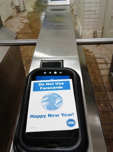 2番目の写真は、大晦日夜に撮った駅の改札口。電車が タダ!