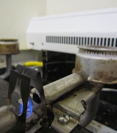 それにガス臭さの原因は、火種のためにチョロチョロ出続けているガスが、燃焼せずに放出されていた ことだ。今回は比較的すぐに気付いたから問題なかったが、出張などで留守宅にガスが充満したら、爆発が起こったりしないんだろうか?片一方の火種があっても問題なかったので、いちおう安全なんだろうが…何だかちょっと怖い、雑なアメリカのガスコンロだ。